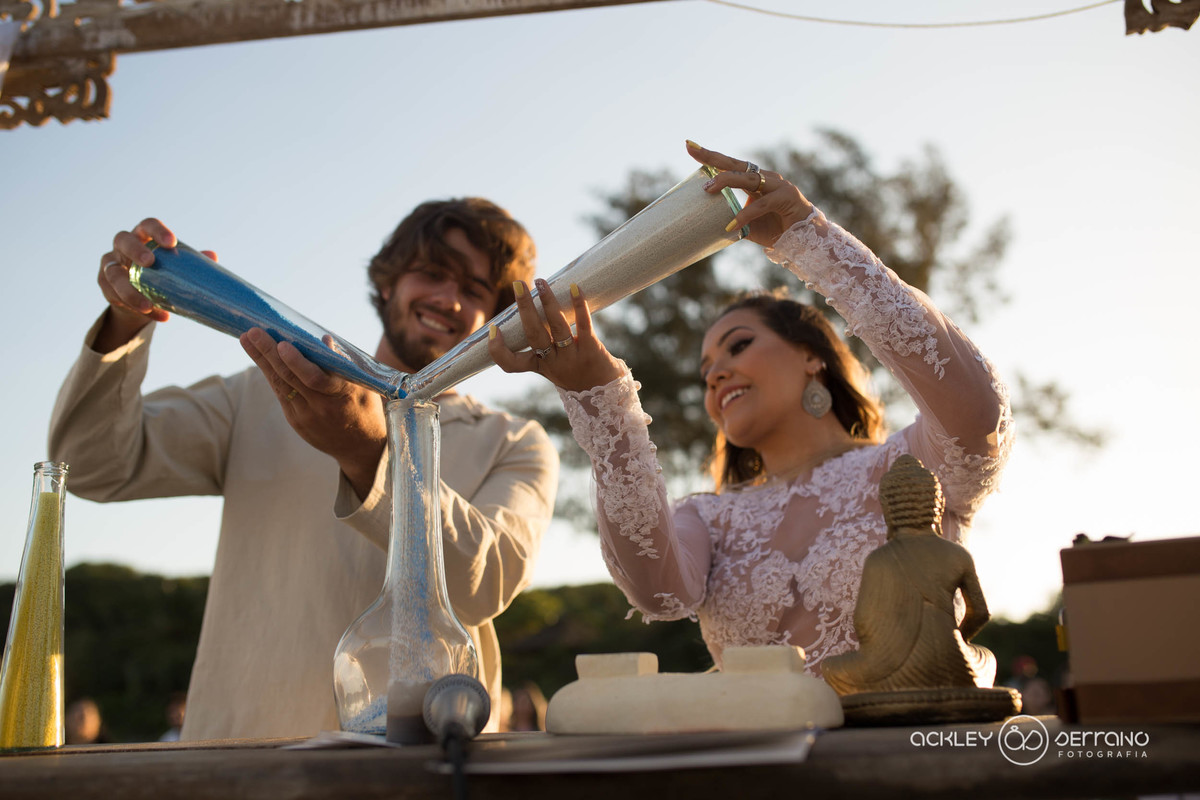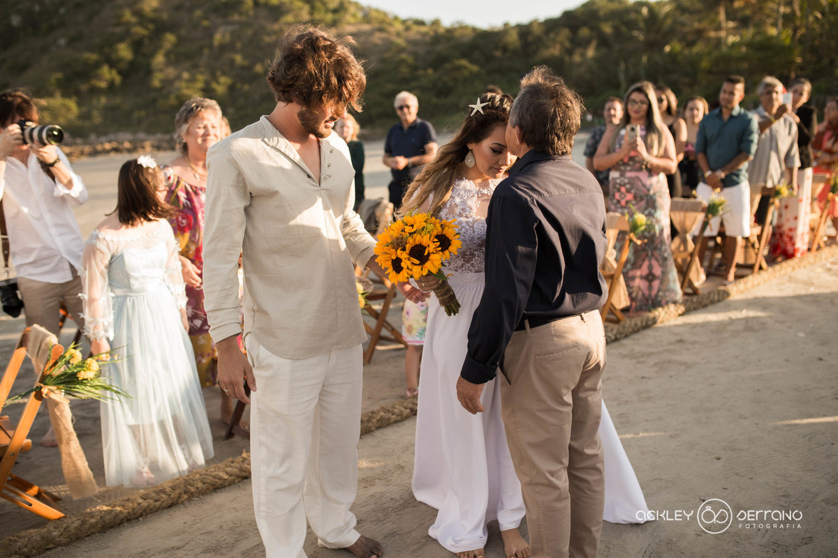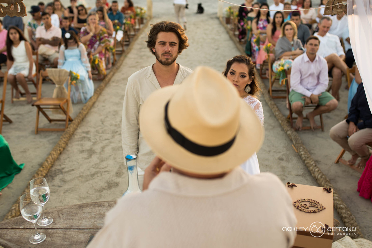 Esse casamento pé na areia, lindo tem uma história mais linda ainda...