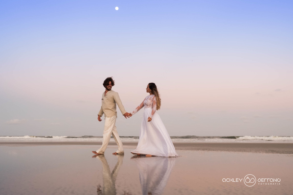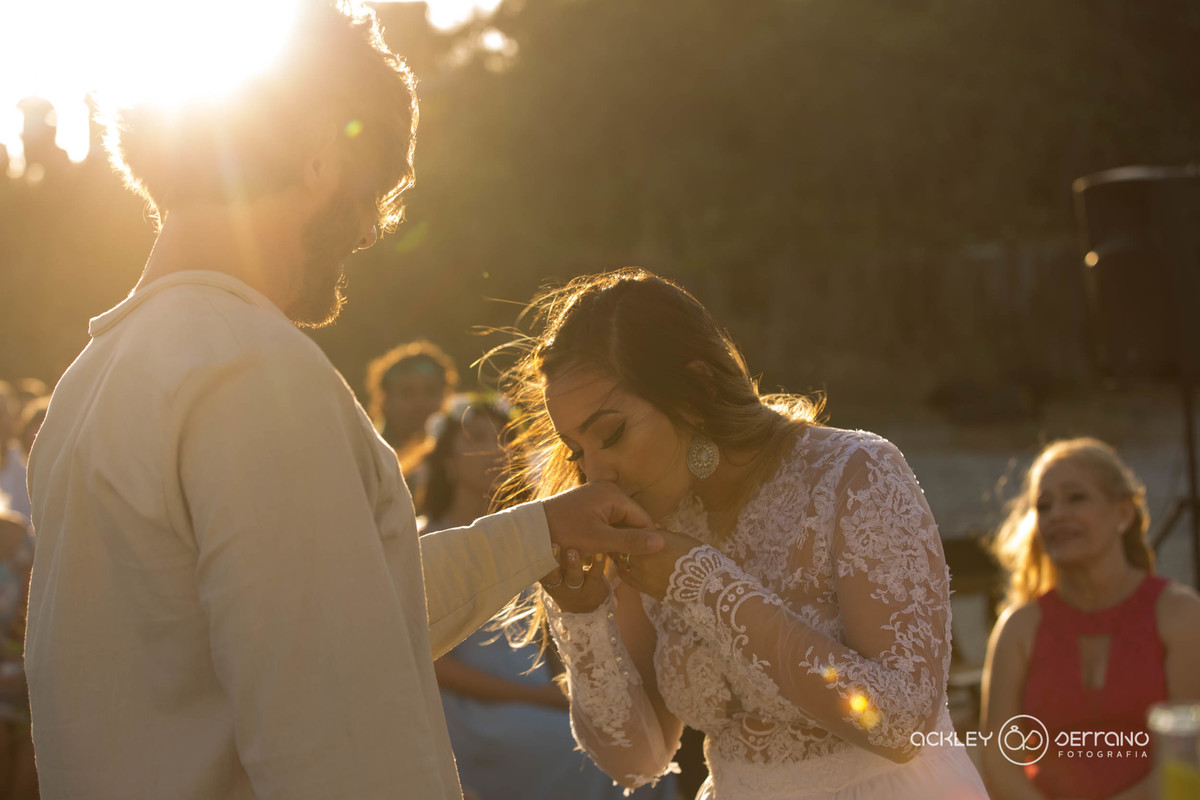 Quando Naum completou seus 15 anos, veio a ilha para as festividades de fim de ano, e eu já com 17 anos notei que já o conhecera mas agora o vi com outros olhos... já não era mais aquele “pirralho”, tinha muito mais altura do que eu e lindos olhos verdes. Era a primeira vez que o enxerguei de verdade, que já não era o mesmo olhar de alguns anos atrás. Naquele ano (2009 para ser mais exata), aproveitamos o verão juntos e parecia que aqueles dias seriam eternos. Sei que é difícil um casal adolescente falar de amor com a explosão de paixão que acontece nessa idade, mas para além daqueles momentos já existia muito amor. E com o início do ano de 2010, ele voltava ao seu país, e eu iniciava a faculdade pública no curso de Pedagogia. Foram dias bem tristes, um ano amargo, muito amadurecimento, mudança para a cidade e no fundo a certeza de que provavelmente não nos veríamos tão facilmente. E no fim daquele mesmo ano, ele voltava a morar no Brasil com sua mãe, e agora já uma irmã Argentina, e alguns problemas familiares. Me lembro desse dia como se fosse hoje, pois chegaram no momento em que se comemorava a festa de Natal para as crianças, num 23 de dezembro. No dia 30 do mesmo mês, Naum me pede em namoro e afirmamos finalmente o nosso relacionamento que já tinha começado muito lá atrás, quando eu o beliscava e odiava ter que dançar com ele. O início do nosso relacionamento como qualquer outro foi bastante complicado, principalmente as diferenças de pensamento de nossas famílias que vez ou outra entra em conflito, mas já não é como no passado. Foram várias as dificuldades, mas não acho que essa parte deve ser exaltada, afinal, cá estamos 7 anos e agora eu, com 25 e Naum com 23 decidimos nos unir perante a lei dos homens e de Deus numa cerimônia simples mas da mais pura sinceridade e amor. Quando uma amiga nos marcou na publicação de sua postagem, logo pensei que poderia ser a oportunidade de eternizarmos nosso sonho, porque estávamos nos programando para o nosso casamento em abril de 2018. Pode ser coincidência, mas eu prefiro acreditar na minha fé em Deus e de que todas as coisas têm uma razão para acontecer. Estamos maravilhados com sua atitude enquanto fotógrafo, sou professora e esses atos me deixam com muito mais crença na sociedade. Obrigada por realizar o sonho de muitas pessoas, qualquer história de amor que seja escolhida será uma dádiva na vida do casal. E obrigada por querer conhecer nossa história de amor sem nem mesmo nos conhecer. Deus te abençoe!